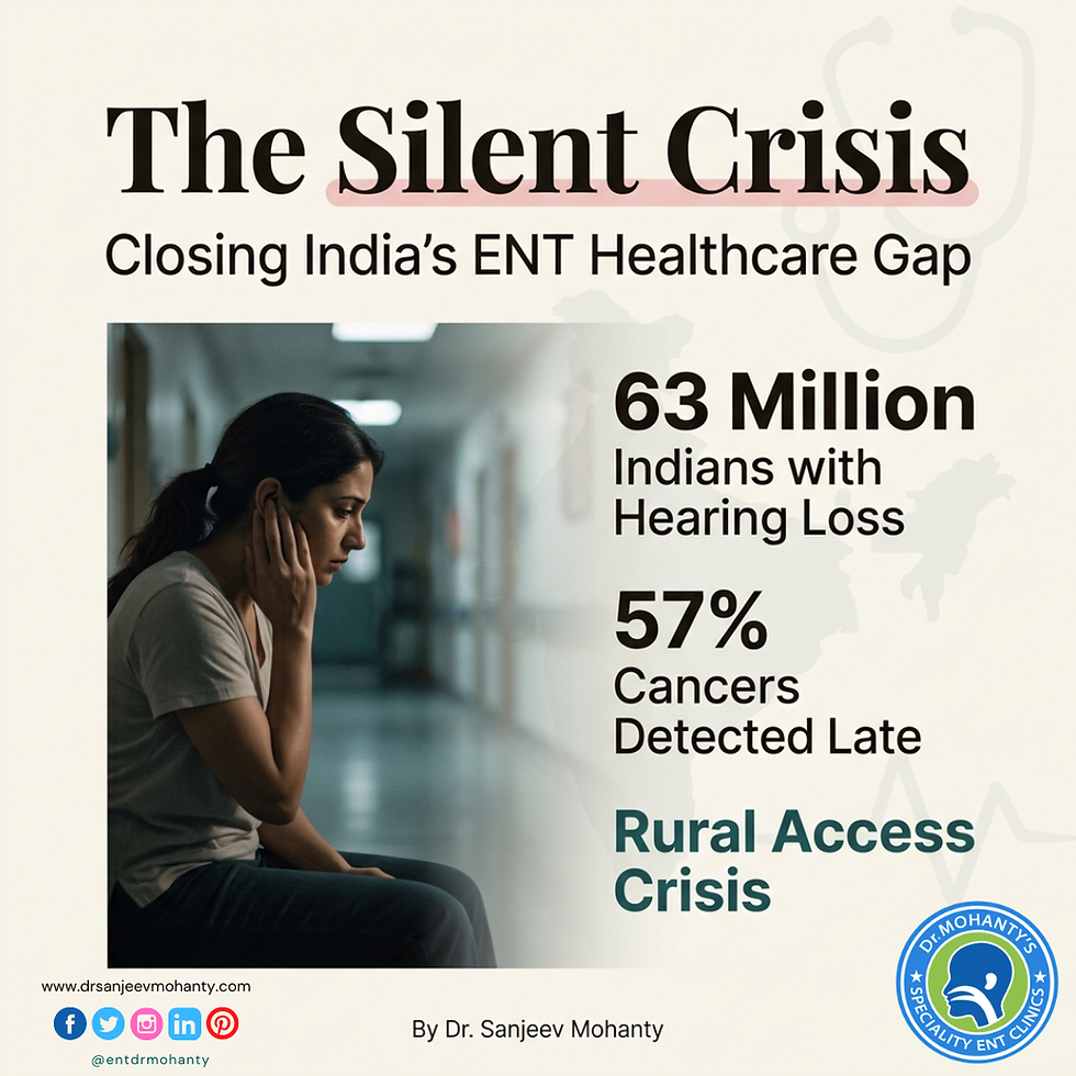 ABOUT THE AUTHOR Dr. Sanjeev Mohanty MS (ENT), Senior Consultant in Head & Neck Surgery with over two decades of clinical practice across tertiary and secondary care settings in India. A recognised voice in ENT healthcare advocacy, Dr. Mohanty has contributed to national training workshops, rural health initiatives, and policy discussions on hearing health and head-and-neck oncology in the Indian subcontinent. He writes on the intersection of clinical medicine, public health, and healthcare systems reform. |